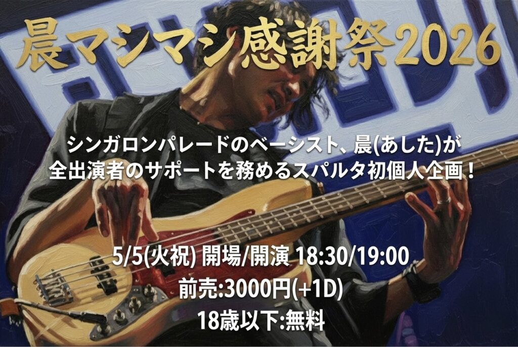 シンガロンパレードのベーシスト、晨(あした)が全出演者のサポートを務めるスパルタ初個人企画!