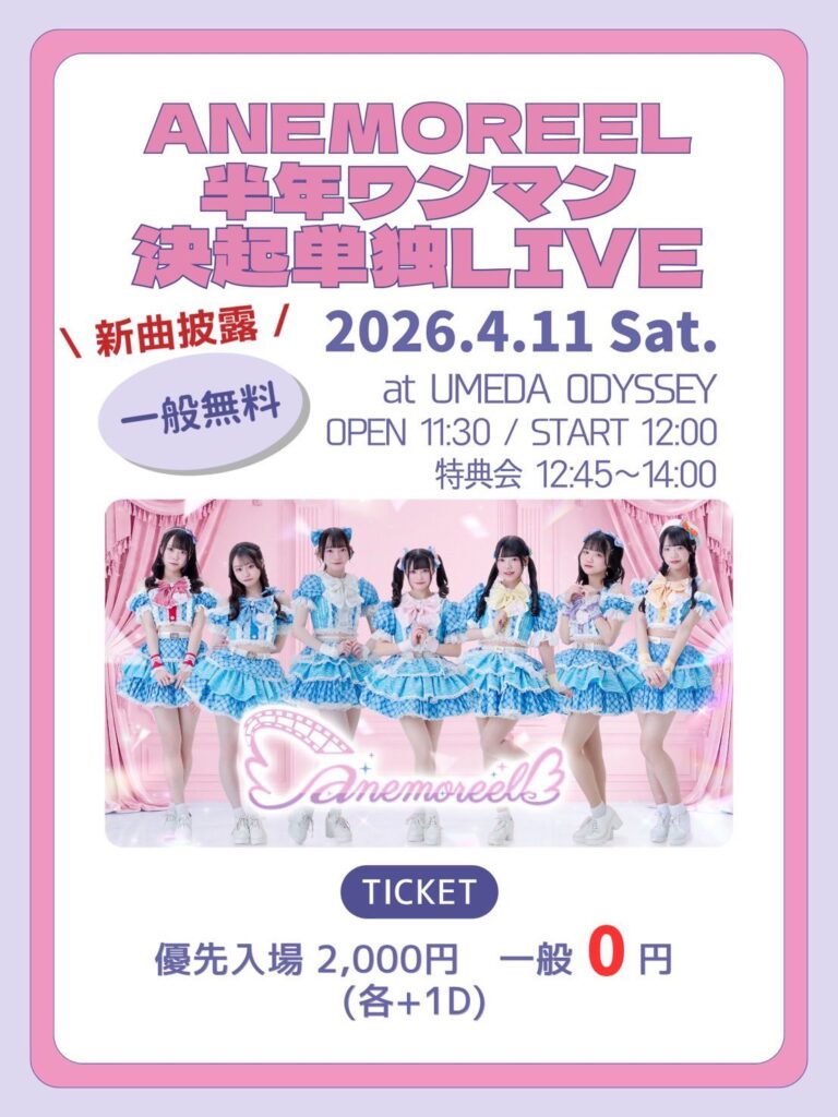 【昼】anemoreel半年ワンマン決起単独LIVE#1 anemoreelエイプリルフール無銭 | 大阪梅田の新たなLIVESPACE ODYSSEY