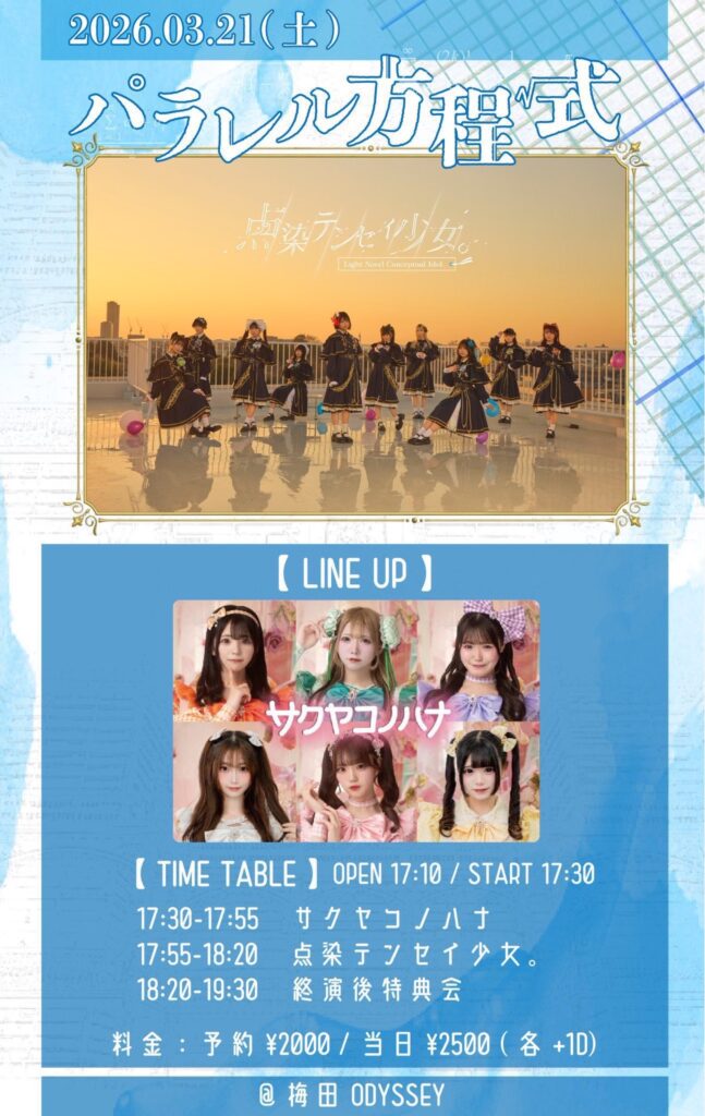 【夜】1部 点染テンセイ少女。/サクヤコノハナ 2マン『パラレル方程式』 | 大阪梅田の新たなLIVESPACE ODYSSEY
