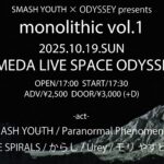 SMASH YOUTH × ODYSSEY presents “monolithic vol.1” OPEN/17:00 START/17:30 ADV/¥2,500 DOOR…