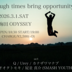 2026.1.31.SAT 梅田LIVE SPACE ODYSSEY “Unedited vol.2” OPEN/18:30 START/19:00 ADV/¥3,000 DO…